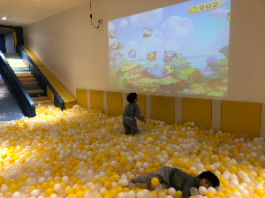 볼풀장에 공도 적당히 있고 공을 벽에 던지는 저 게임도 잘 됐습니다. 다른 키즈카페는 녹화된 화면을 틀어놓는 경우가 있습니다.