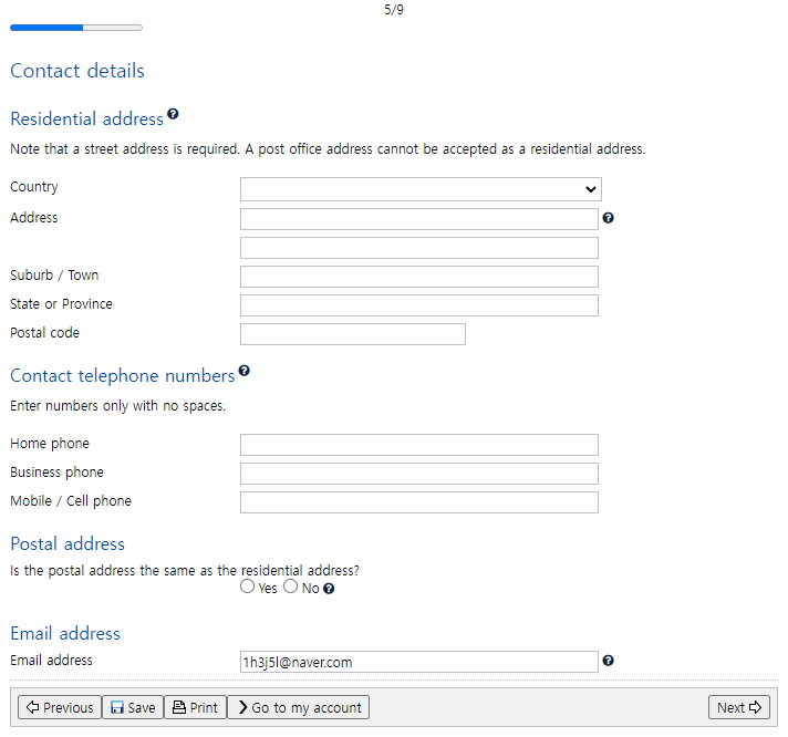 그리고 다음은 현재 거주중인 주소와 연락받을 연락처를 입력합니다.